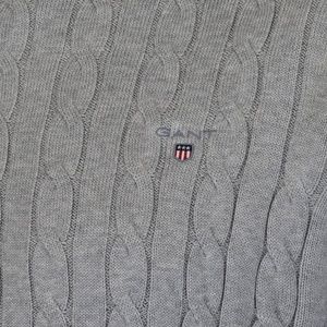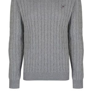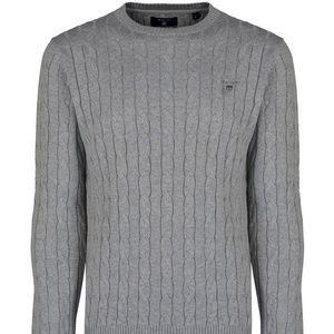 Upgrade your wardrobe with this GANT Men’s Cable Knit Cotton Sweater, brand NEW with tags. This premium Grey Melange crew neck jumper delivers timeless style, comfort, and quality.