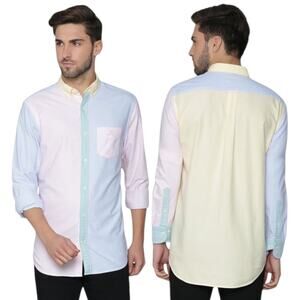 GANT Mixed Panel Oxford Button Down Shirt Pastel Colors Evening Party Night Out