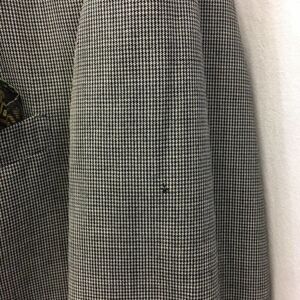 Preowned - small hole on sleeve / no size tag review measurements / spot on lower sleeve
