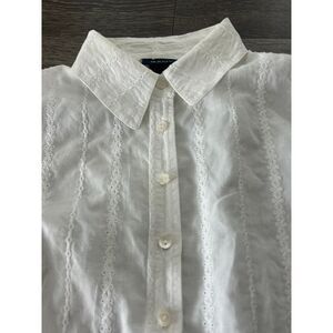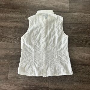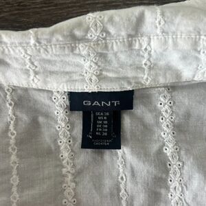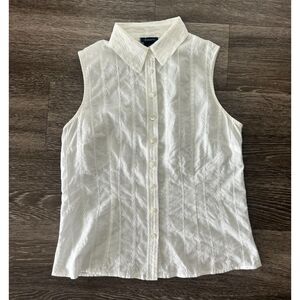 GANT White Sleeveless Cotton Blouse Size 6 Embroidered Eyelet Button Preppy Chic