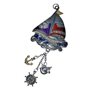 GANZ CAR CHARM 2 Sided Hanging Sailboat Theme Pewter Red Blue 4”