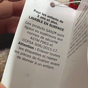 - Tag: A red tag attached to its ear features a heart logo and the text "Get your hands on a GANZ".