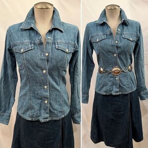 GAP 100% Cotton Blue Jean Buttoned Denim Shirt (36" W x 22" L) Pockets Size S