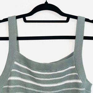 GAP sage green & white striped knit tank top. In excellent condition! Rounded neckline. Sleeveless. Thick spaghetti straps. Small slits on the sides. Tight knit material. Light green with white stripes. Size small.