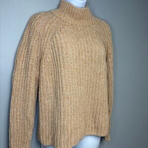 GAP 100% Cotton Tan Neutral Minimalist Cableknit Relaxed Fit Sweater Womens Sz M