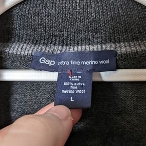 GAP 100% Extra Fine Merino Wool Grey Pullover 1/4 Zip Sweater Size Large
