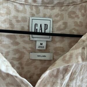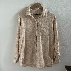 GAP 100% Linen Neutral Leopard Long Sleeve Button Front Top Blouse Shirt Medium
