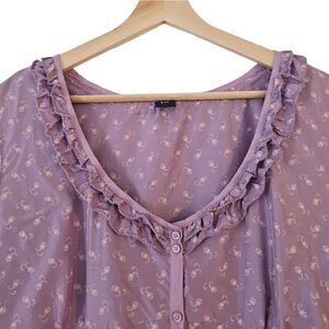 GAP 100% Silk Ruffled V Neck Blouse Top Bohemian Purple Size L