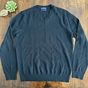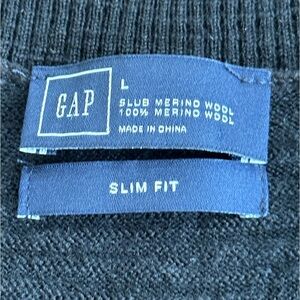 GAP | 100% Slub Merino Wool Slim Fit Black V-neck Sweater