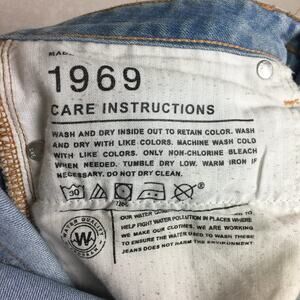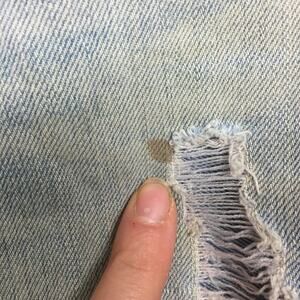 features: 1969 GAP distressed skinny leg denim, stain on leg, classic 5 pocket style, zipper & button closure