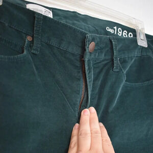 Pre-owned, great condition. No visible holes or stains. Normal signs of wear. GAP 1969 Legging Jean in Tropical Green. Beautiful forest green fine corduroy. Mid rise. 5-pocket style. Zip fly closure. Stretchy. Soft. Size per tag: 29R (regular) Fabric: 78% Cotton/ 22% Elasterell-P. Size per tag does not guarantee desired fit, please see pictures for measurements.