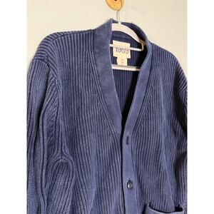 Ribbed knit sweater fisherman knot sweater button down dark blue cardigan prep
