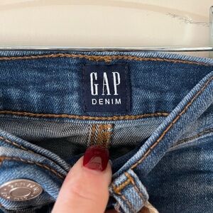 EUC Excellent condition! Medium wash, distressed, “true skinny” straight jeans. Measurements in photos! GAP brand, great quality! Women’s size 26. Smoke free home