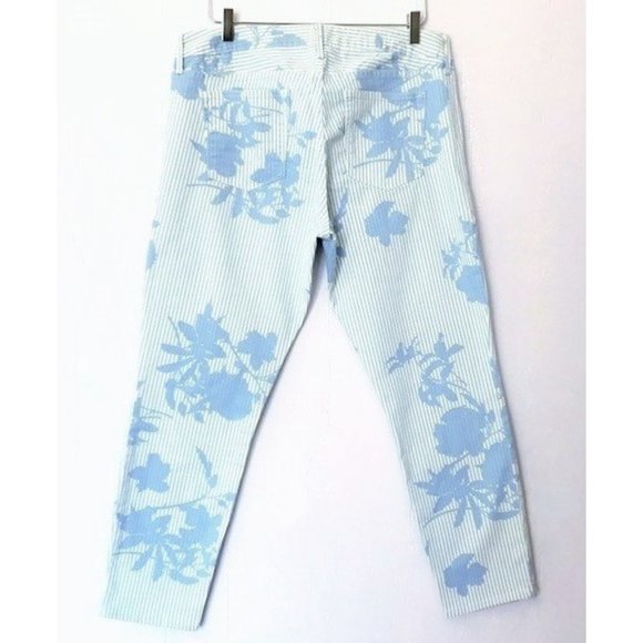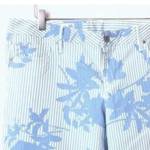 GAP 1969 WHITE SKY BLUE FLORAL STRIPED ALWAYS SKINNY SKIMMER LOW RISE JEANS 32R