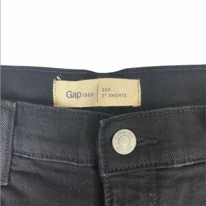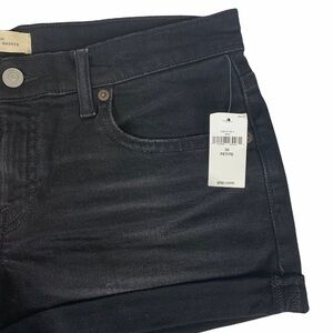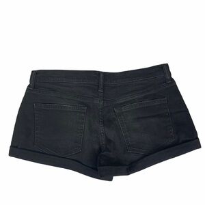 3” 30P black denim shorts. Rolled cuffs. zip fly