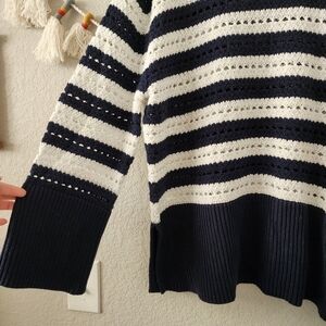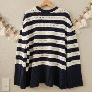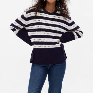 GAP 24/7 Spit Hem Crochet Stripe Chunky Knit Boxy Oversize Pullover Sweater L