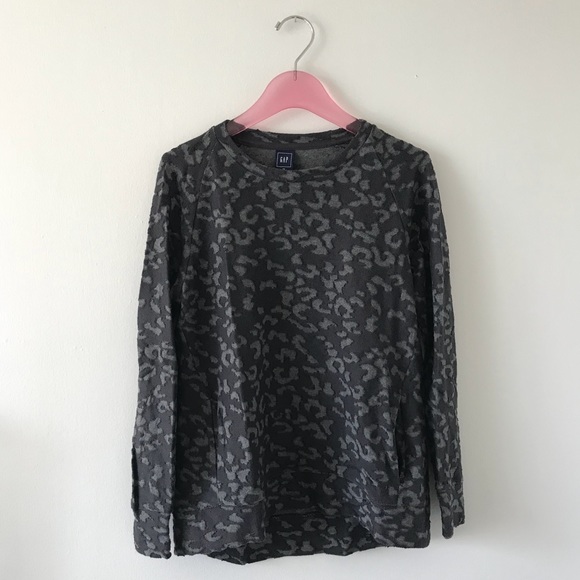 Long sleeve, printed Gap sweatshirt like top. Very light weight. Has the “burn-out” feel to it. Dark gray with light gray print. Size XS. Pockets in front on each side. Super comfortable. Only worn twice. In excellent condition. No trades please. For sale only. Thank you and happy poshing!