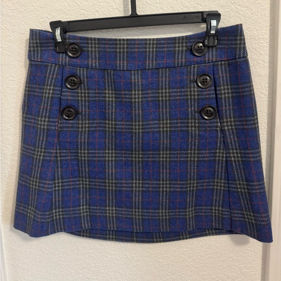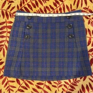 Blue Gray Plaid Wool Skirt Mini