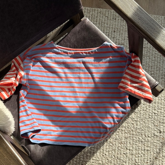 Gap boxy striped tee size Small in blue and orange. 100% cotton with a relaxed cropped fit and soft structured feel. Classic casual everyday top.