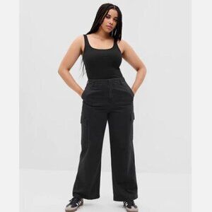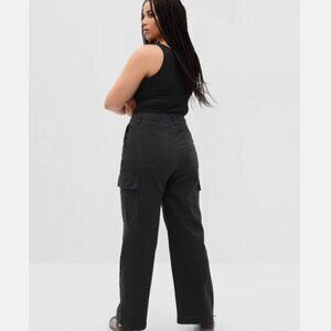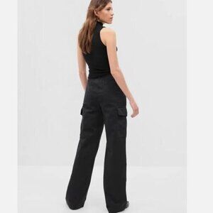 GAP 90's Style Mid Rise Loose BOHO Wide Leg Cargo Khakis Black Size 12 PETITE