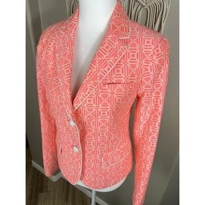 GAP Academy Blazer ~ Size 0 ~ Neon Coral Pink White Preppy Geometric Design