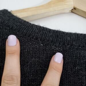 At the upper collar area the knit is a little spread out in a small spot. Not a hole, just a tiny spread out spot. See pic.