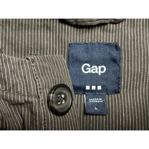GAP Anorak Pullover Utility Jacket Mens Size L Brown Hooded Striped