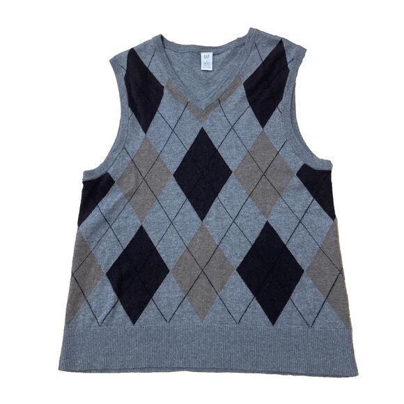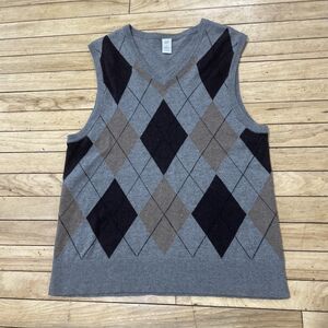 GAP Argyle Sweater Vest Wool Blend Men S Gray Brown Knit V Neck Pullover S 38"