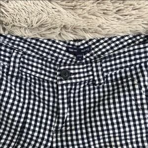 Linen and Cotten blended gingham short. Navy and white. In excellent used condition no signs of wear