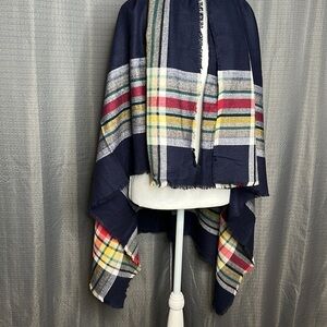 GAP BLUE AND PLAID BLANKET SHAWL WRAP