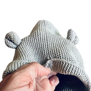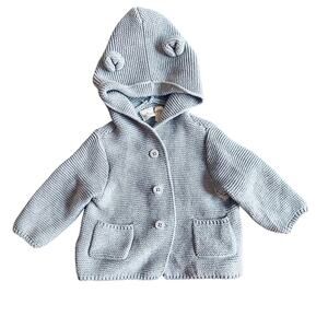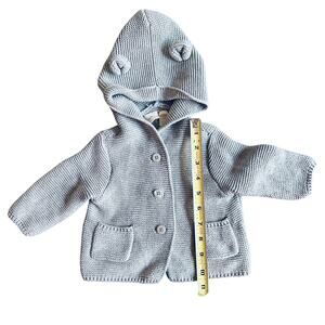 GAP Baby Knit Hooded Cardigan Sweater Bear Ears Gray 3–6 Months 100% Cotton