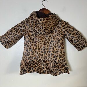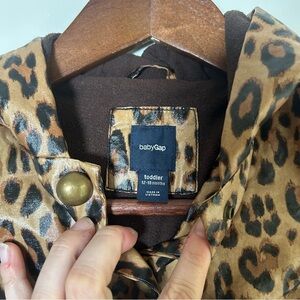 Stylish GAP baby coat with leopard print. Features a cozy design and button closure.