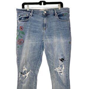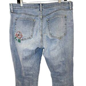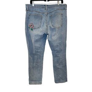 GAP Best Girlfriend Distressed Blue Jeans Embroidered Floral Bird Stretchy Sz 32