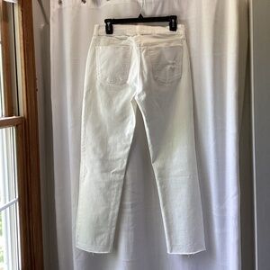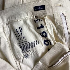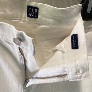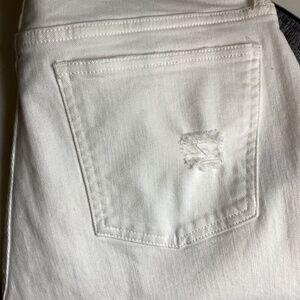 Very good condition, GAP best girlfriend style jeans in white soft stretch denim. Cute light distressing as shown, but no see-through areas. These are not super sheer like some white pants, but they’re not heavy denim either, so great for warmer weather. No flaws. Measurements are 14.5” waist, 10” rise, 26” inseam. Thank you for looking! 🤗