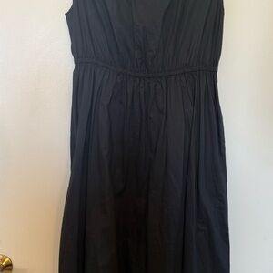 GAP black sleeveless dress with elastic waist. C-neck that can be tied or left open. Fully lined. 100% cotton dress and lining. Super soft. There is something super simple and yet feminine about this dress. Great for a day out, dinner date, or traveling.