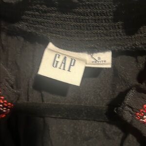 Chic black dress with red trim. Long sleeves. Perfect for versatile styling. Elastic waste Red and soft pink embroidery Ruffled hem Flowy