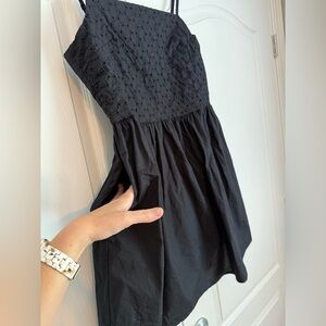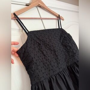 GAP size medium black dress. With pockets and adjustable spaghetti straps. Top front is eyelet and the back top is smocked. See pics for additional details about dress and let me know if you have any questions. Measurements are in pics. I have other listings like this in my closet so be sure to check it out and bundle to save!