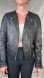 Genuine black leather moto cropped jacket with quilted shoulder detailing. Asymmetrical zipper front closure, multiple zippered pockets, and zippered cuffs add edgy style. Fully lined quilted chambray interior for comfort. 100% authentic cow leather. Gently used preowned condition with minor signs of wear as detailed.