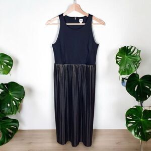 GAP Black Ponte & Gold Metallic Pleated Midi Dress - Size 2P