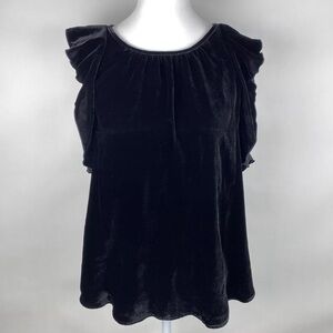 GAP Women’s S Black Velvet Silk Blend Tank Top Ruffle Sleeve Trim Shirt Blouse