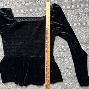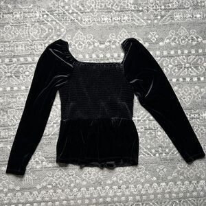 GAP Black Velvet Smocked Peplum Top Women's Medium Whimsygoth Peasant