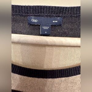 GAP Black and Cream Crew Neck Sweater with Stripes Small