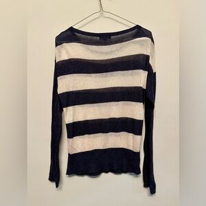 Add a little timeless charm to your closet with this navy & cream striped sweater from GAP. Light as air and slightly sheer, this soft knit is perfect for effortless layering—toss it over a tank for weekend errands, or pair with white denim and gold hoops for that breezy sailor-chic vibe. Classic never looked so easy.