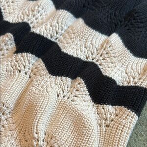 Chic midi dress with a black and cream wave pattern. Sleeveless and stylish for versatile wear.