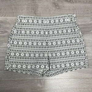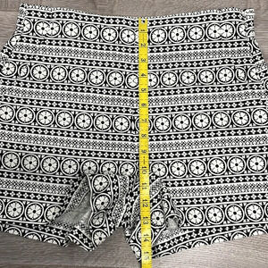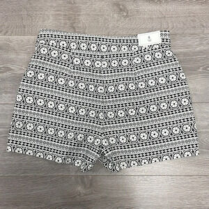 Stylish high waist shorts. Black and white pattern. Comfortable fit. Perfect for casual wear.