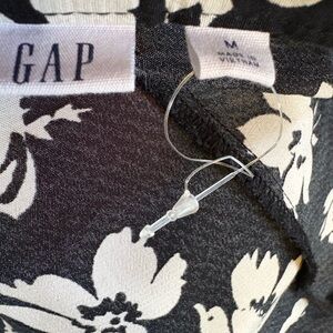 This elegant midi skirt from GAP features a sophisticated black and white color scheme with a chic wrap style, perfect for a night out or cocktail event. The delicate floral pattern adds a touch of femininity, while the flowing fabric ensures comfort and grace. Its midi length and wrap design make it a versatile addition to any wardrobe.