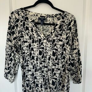 Stylish GAP blouse with abstract black and white pattern. Features a modern design and comfortable fit.
