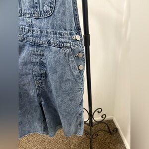 Stylish denim jumpsuit. Features front pocket and adjustable straps. Perfect for casual wear.