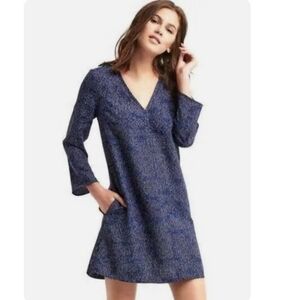 GAP Blue Dot Print A-Line Swing Dress Business Casual Comfortable Long Sleeve M