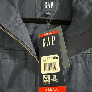 Stylish blue zip-up jacket from GAP. Features a sleek design with a front zipper, cinched waist, and button closures by the wrists. Can fit an XS or small!